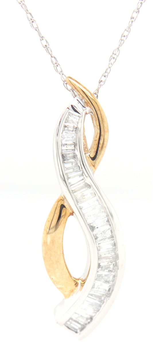 10kt White gold 0.50ctw baguette two tone bar pendant on chain