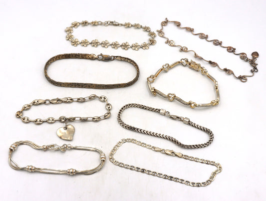 Group Lot of 9 Vintage 925 Sterling Silver Bracelets