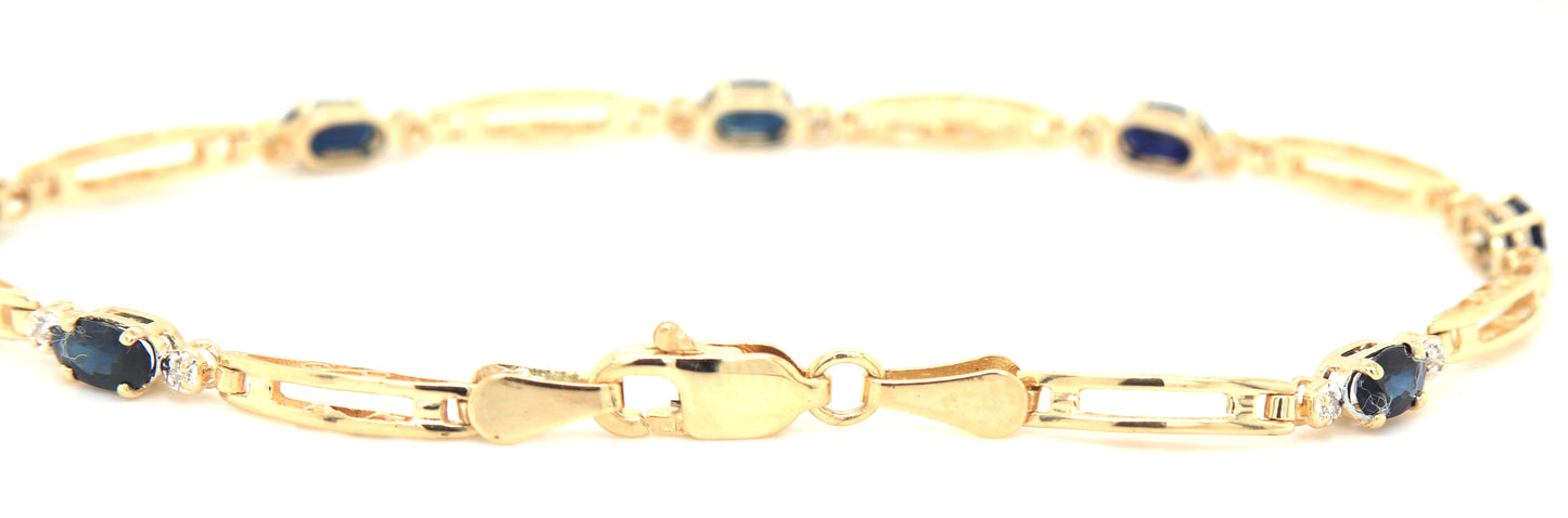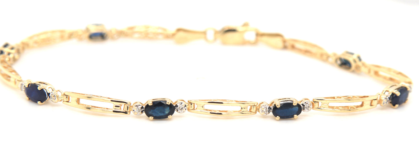 14kt Yellow gold 2.50ctw blue sapphire and diamond bracelet