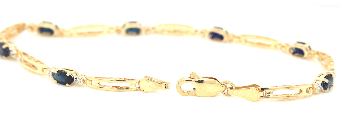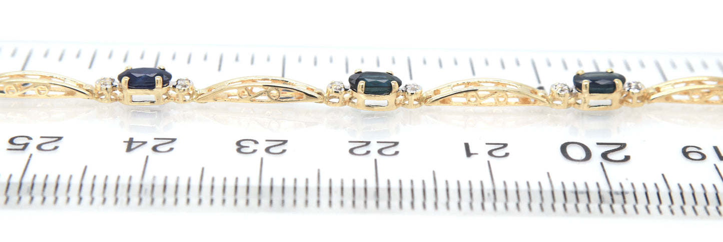 14kt Yellow gold approximate 2.50ctw blue sapphire and diamond 7 inches bracelet. Total weight of bracelet is 3.93 grams.
