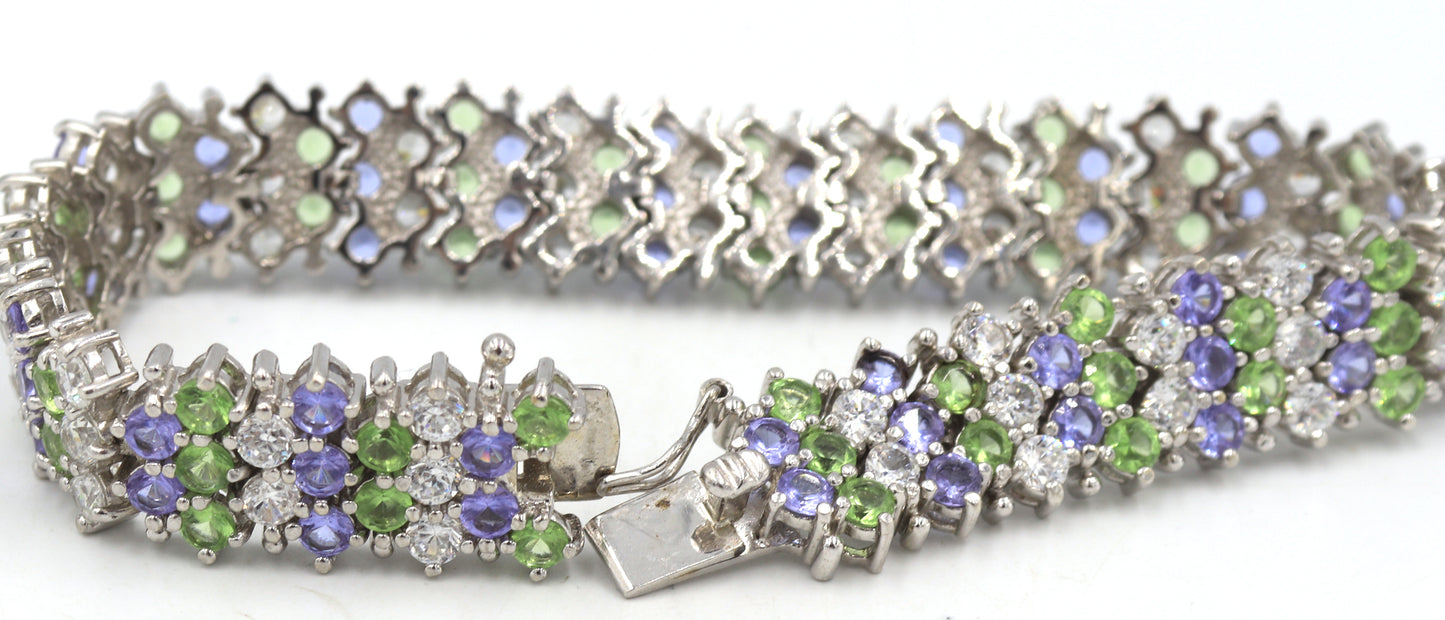 925 Sterling silver colorful cubic zirconia 7 inches bracelet. Total weight of bracelet is 32.3 grams.
