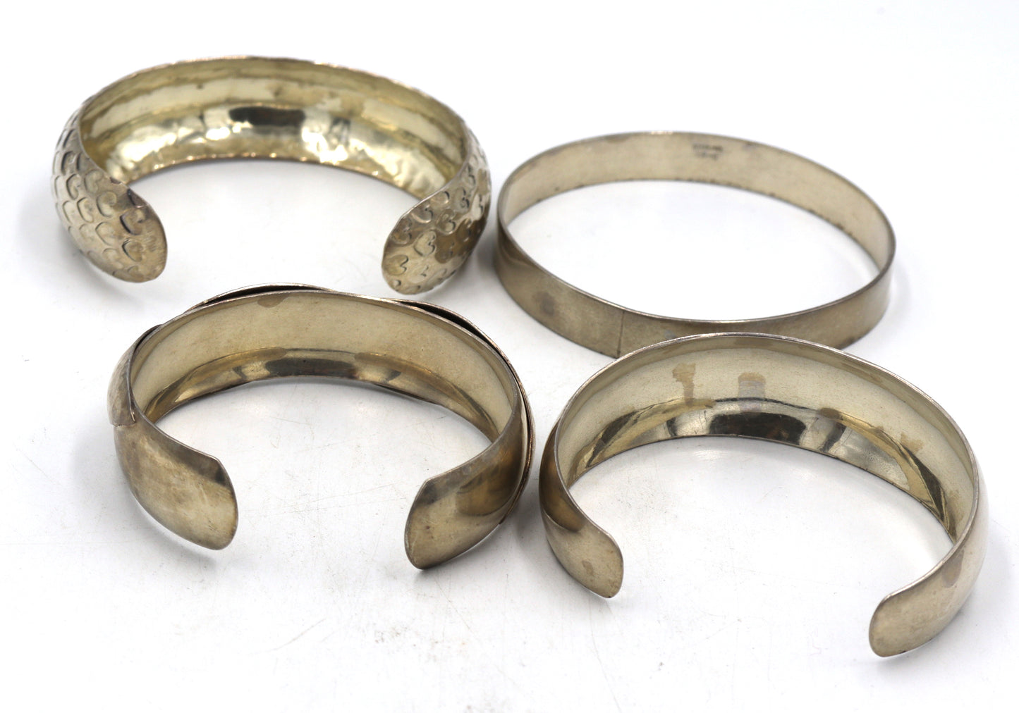 Group lot of 4 Vintage 925 sterling silver cuff bangles
